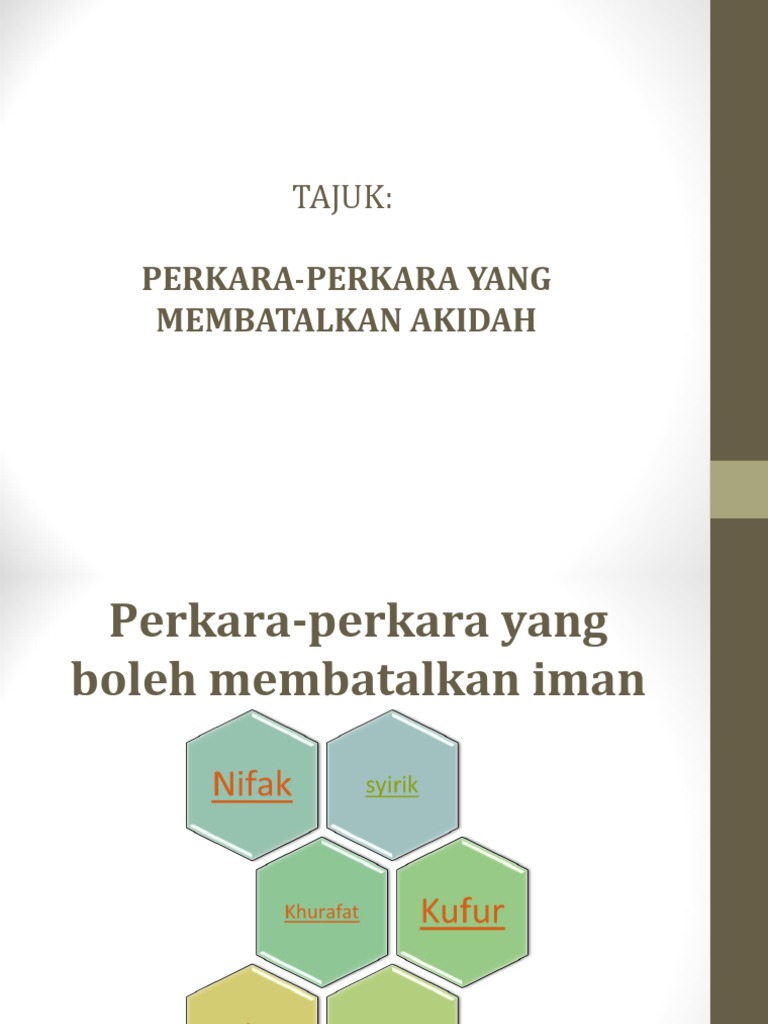 MohdAidil Bin OthmanPensyarah. Perlakuan syirik terang-terangan seperti. You have just read the article entitled Perkara Yang Merosakkan Akidah.